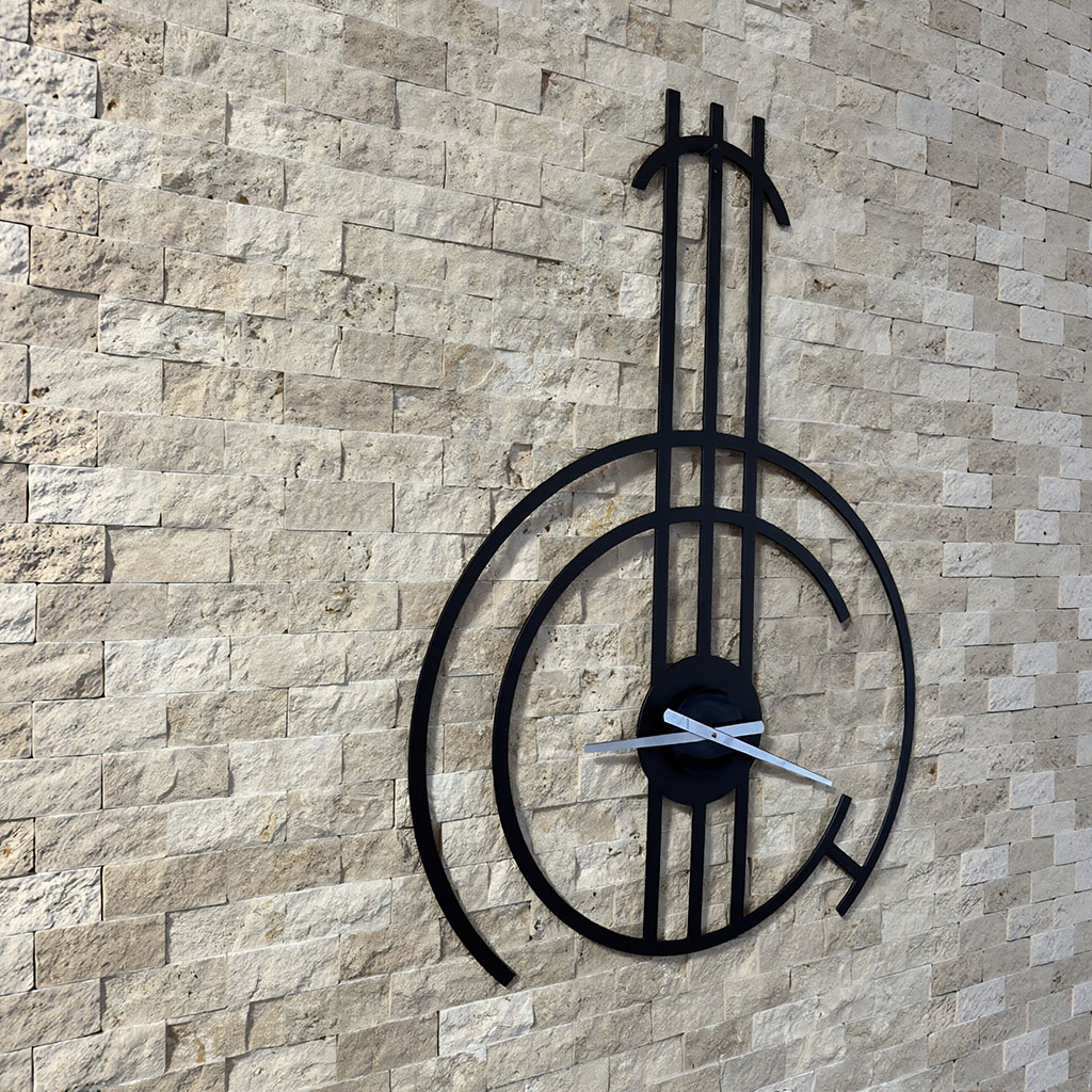 שעון קיר מרהיב בעיצוב גאומטרי מודרני, עשוי מברזל איכותי בחיתוך CNC מדויק.